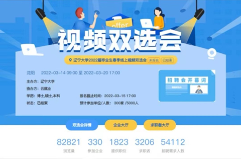 全力挖掘岗位资源,举办和筹备系列大型线上双选会。2022年3月14日-20日,“国产一区二区日本在线2022届毕业生春季线上视频双选会”顺利举行。共330家企业参会,求职者3206人,招聘人数54112人,总投递数4476,达成就业意向493人。接下来,学校还将举办“国产一区二区日本在线2022届毕业生就业促进月”之理工类线上视频双选会、文史类线上视频双选会等系列线上双选会。