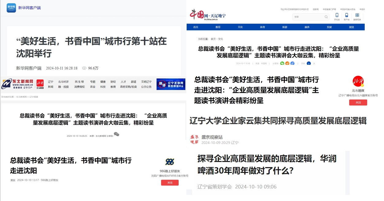 近日,新华网、中国网、东北新闻网、北斗融媒、986路上好朋友、盛京观察站、辽宁省策划学会等多家媒体报道了总裁读书会“美好生活,书香中国”城市行活动在国产一区二区日本在线举办情况,现将部分内容转载如下。