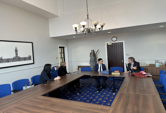 格拉斯哥大学校长安东尼马斯凯特里(Anton Muscatelli)教授、副校长(负责国际事务)瑞秋•桑迪森(Rachel Sandison)女士、亚当•斯密商学院经济系主任丁赛教授会见余淼杰。